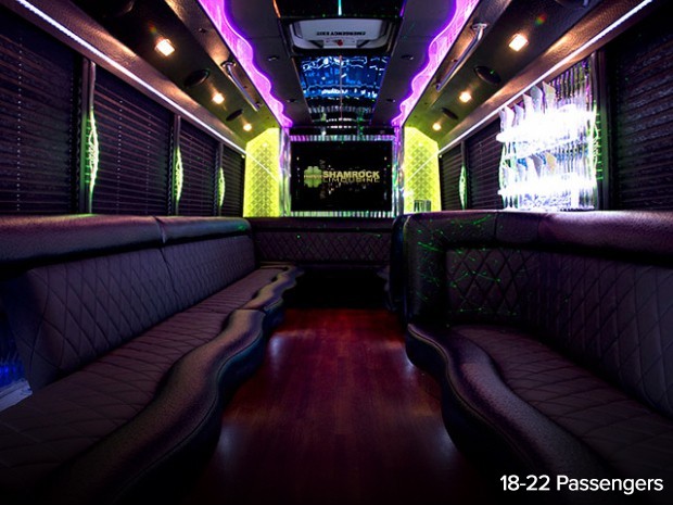 Stretch limousines are old news, Limo Buses are in! Shamrock Limousine’s brand new party buses are sure to impress as you ride around Pittsburgh. These vehicles are great for concerts, sport outings, birthdays, proms and Weddings. With bridal parties getting larger and larger Shamrock Limo Buses are able to provide comfortable, fun transportation for up to 28 passengers. The party starts in the Bus!